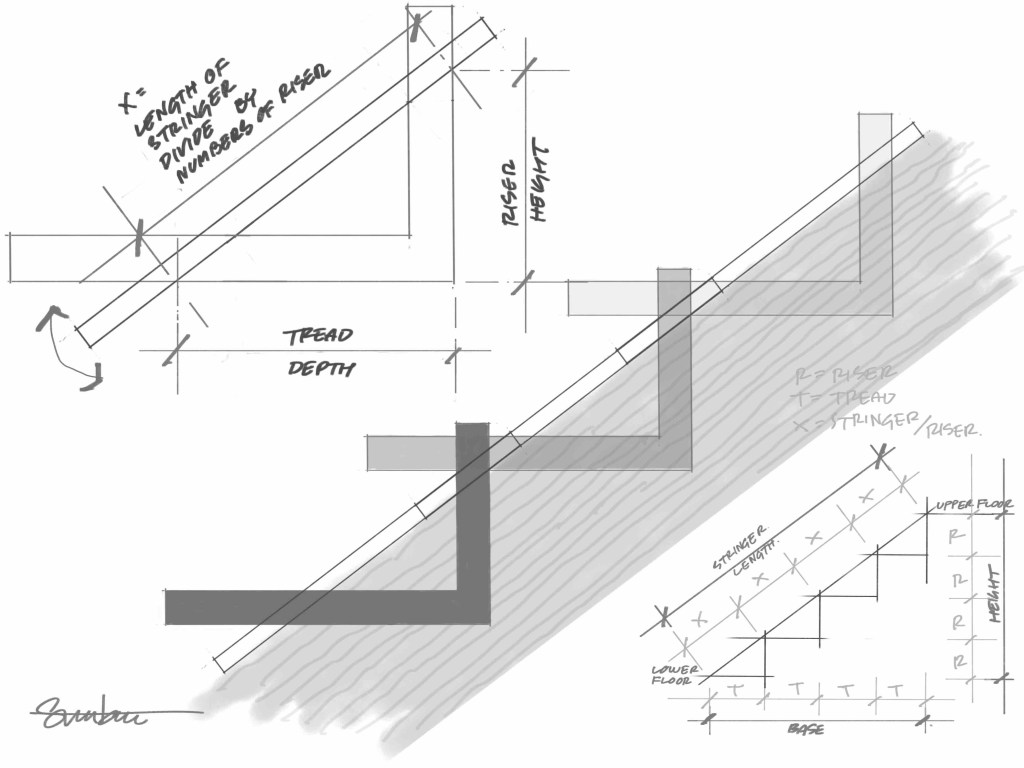 วิธีการขึ้นรูปแบ่งขั้นบันไดที่แม่นยำมากขึ้นโดยการใช้ฉากเหล็กหนีบประกบด้วยชิ้นไม้เพื่อใช้เป็นแกนระนาบอ้างอิง โดยขอบด้านหนึ่งของชิ้นไม้ชี้ไปที่ขาฉากด้านยาวตามระยะของลูกนอน ขอบอีกด้านหนึ่งชี้ไปที่ขาฉากด้านสั้นตามระยะของลูกตั้ง เมื่อ lock หนีบไม้ประกบนี้แล้วจะได้ Jig ความลาดเอียงของบันไดตามสัดส่วนของลูกตั้งและลูกนอนเพื่อใช้ในการขึ้นรูปได้อย่างแม่นยำ