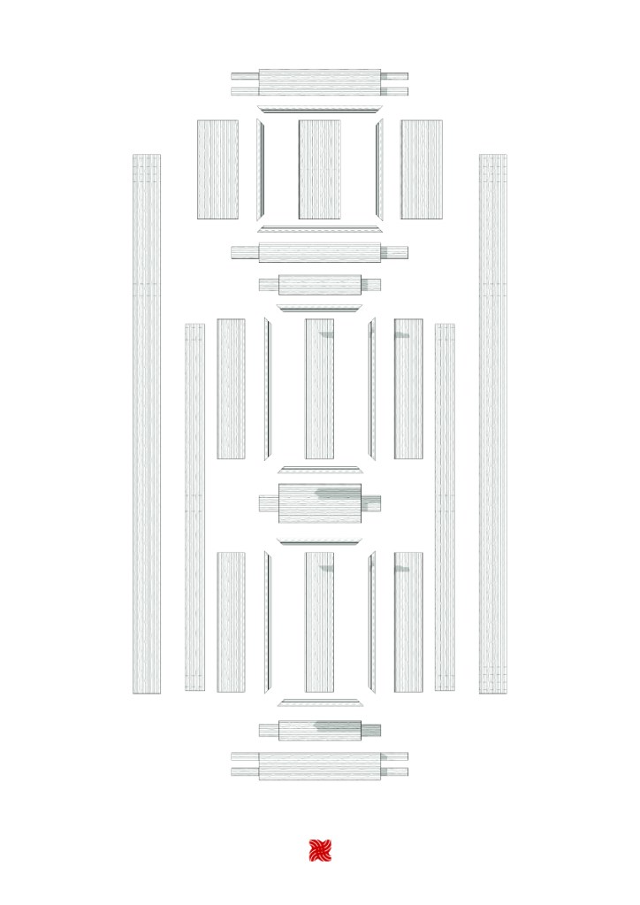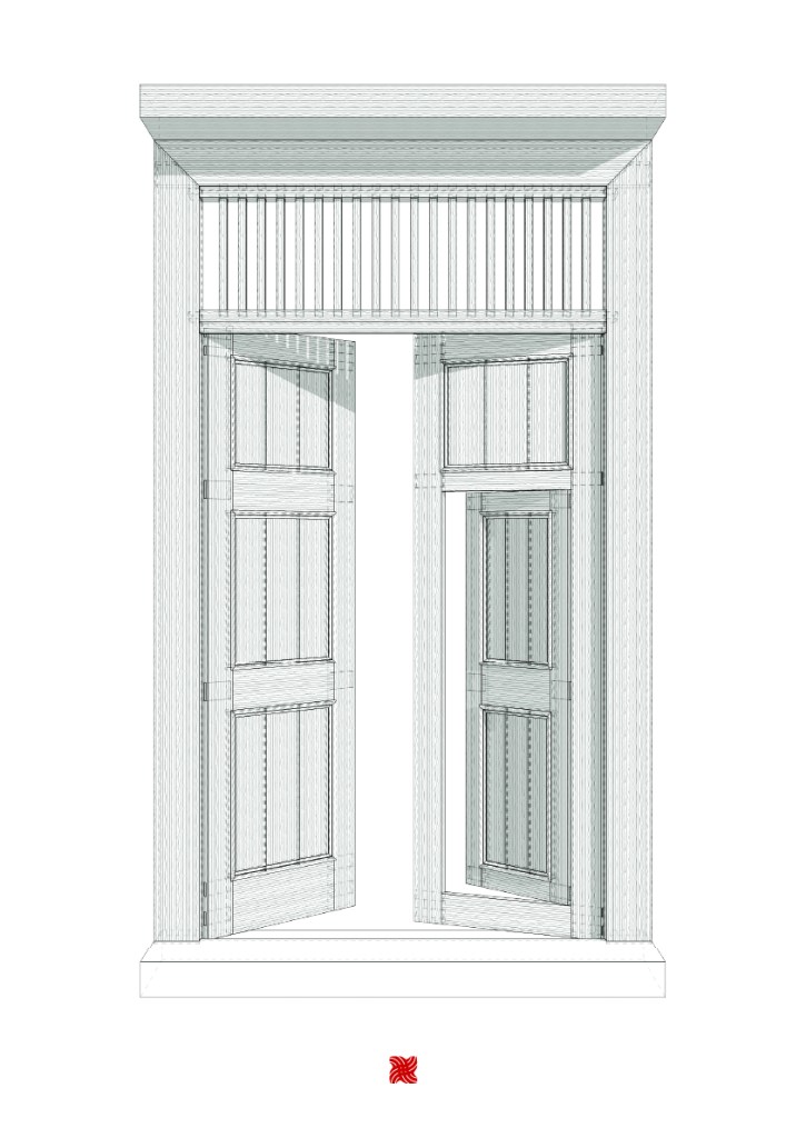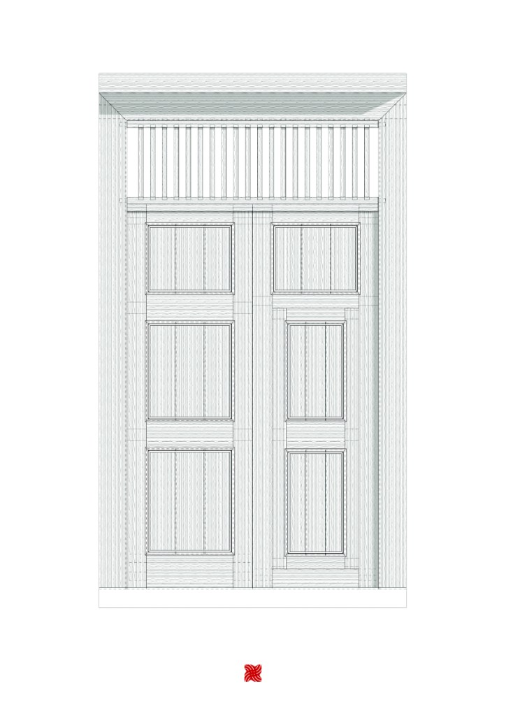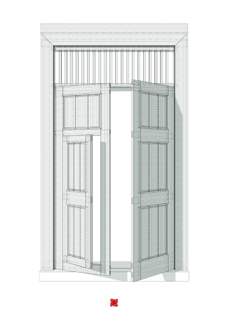 แบบสันนิษฐานรายละเอียดการประกอบสร้างองค์ประกอบสถาปัตยกรรมไม้ภายในมหาวิทยาลัยศิลปากร วิทยาเขตวังท่าพระ โดย สันธาน เวียงสิมา และ สรรสุดา เจียมจิต จากนิทรรศการ สุนทรียะในงานสถาปัตยกรรมภายในมหาวิทยาลัยศิลปากร วิทยาเขตวังท่าพระ มกราคม 2567 ณ หอสมุดกลาง มหาวิทยาลัยศิลปากร วิทยาเขตวังท่าพระ