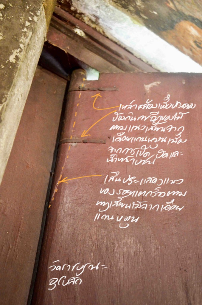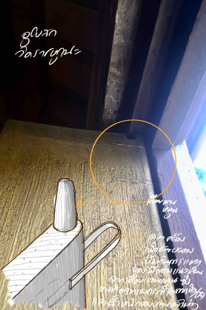 บานประตูหน้าต่างไม้ในงานสถาปัตยกรรมไทย/พื้นถิ่นใช้แกนไม้เป็นอุปกรณ์เพื่อการหมุนเปิดปิด บานประตูหน้าต่างเรือนไทยที่บานไม้หนาและหนักมากนักใช้วิธีร้อยแกนหมุนเวียบในรูร่องทะลุผ่านธรณีบน/ล่าง แต่บานประตูหน้าต่างโบสถ์วิหารบานขนาดใหญ่ หนา และ หนัก ธรณีบนล่างจึงต้องมีขนาดใหญ่ขึ้นและอาจมีเบ้าโลหะช่วยประคอง