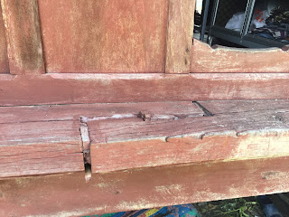 ผู้เขียนได้รับคำแนะนำจากอาจารย์วนิดา พึ่งสุนทร ศิลปินแห่งชาติ ให้ไปศึกษาและเก็บข้อมูลพรึงแนวนอนที่มัสยิดอาโห จังหวัดปัตตานี ปกติจะพบการวางพรึงในแนวตั้ง การพบพรึงแนวนอนนี้จึงเป็นเรื่องที่ชวนพินิจพิเคราะห์ยิ่งนัก นอกเหนือจากเหตุผลที่ว่าเหตุใดจึงวางพรึงในแนวนอน ผู้เขียนพบรอยต่อปากไม้แบบเดือยคุดที่น่าสนใจไม่น้อยไปกว่ากัน ที่ว่าน่าสนใจมิใช่การพบเดือยคุดแต่เป็นการประกอบเดือยคุดโดยใช้ไม้ขัดเป็นตัวเบ่งให้รอยต่ออัดแน่นไม่คลายออกจากกัน แต่ไม้ขัดนั้นกลับเสียบลงในแนวตั้งทะลุผ่านรูร่องที่บากไว้แสดงให้เห็นว่าลักษณะของเดือยขัดไม่ใช้ไม้ที่ผ่าเป็นแท่งสี่เหลี่ยมตามรูปและขนาดรูเท่านั้น แต่มีลักษณะเป็นรูปลิ่ม ส่วนปลายข้างหนึ่งเล็กกว่ารูร่องเล็กน้อยและปลายอีกข้างหนึ่งซึ่งอยู่ด้านบนจะใหญ่กว่าขนาดรูร่อง เมื่อตอดลิ่มไม้ขัดนี้ลงไปจะค่อยค่อยเบ่งรอยต่อตามลำดับของหน้าตัดให้แน่นขึ้นและไม่ทำให้ไม้ขัดนี้หลุดหล่นผ่านรูร่องลงไปได้ง่าย